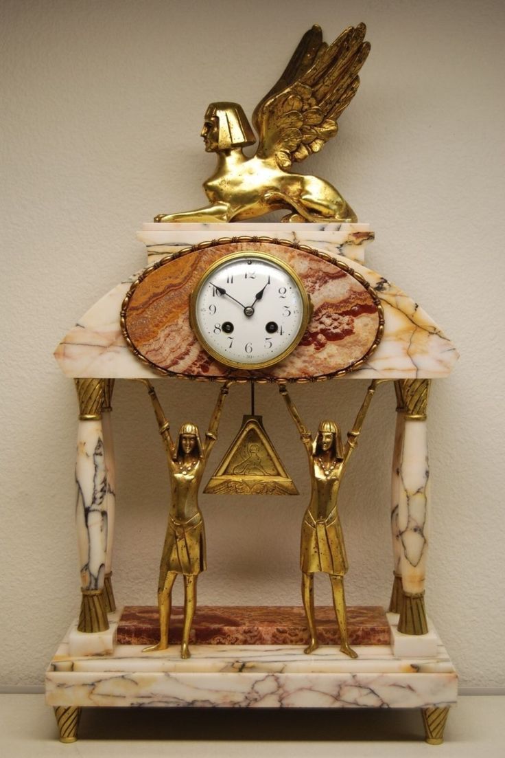 Original Antique egyptian revival french marble sphinx mantel art deco nouveau old clock.