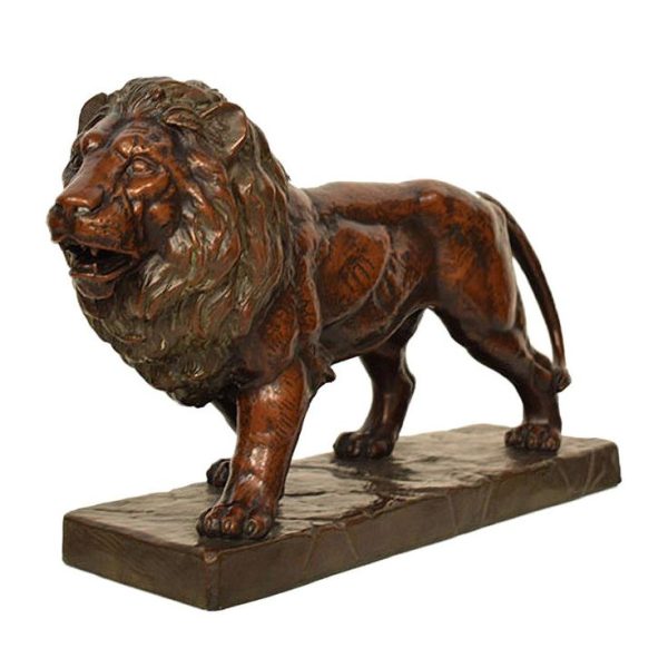 This very fine German Art Deco lion sculpture in ceramic, terracotta and a copper finish was made in the 1930s by EJM. It is in a perfect antique condition with no chips and beautiful patina. A unique piece which is a great eyecatcher for your antique, modern, Space Age or midcentury interior.