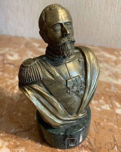 Vintage Sculpture Bust Nicholas II Bronze Emperor Marble Statue Art Rare 20th